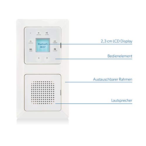 Onderkant: De radio is ontworpen voor inbouw in elke dubbele inbouwdoos, ideaal voor keuken, slaapkamer, woonkamer of werkplaats