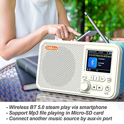 DAB-radio met Bluetooth: 80 soorten presets, maximaal 40 DAB-presets en 40 FM-presets kunnen worden opgeslagen, en het gewenste radiostation kan opnieuw worden bezocht door op een knop te drukken, waarvan twee directe radiostations. Programmeerbare slaaptimer, gebruik de programmeerbare slaaptimer om de radio in de slaapstand te zetten. De duur van de slaaptimer is 10‑90 minuten (optioneel).
