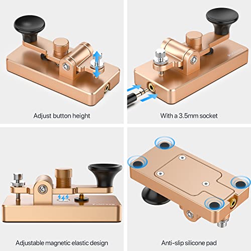 Afstand instelbaar: de afstand van het DIT- en DAH-punch-centercontact kan individueel worden ingesteld en afhankelijk van de persoonlijke gewoonten op een geschikte positie worden ingesteld. Voor gebruik met andere korte golfradio’s is een 3,5 mm standaard stereokabel inbegrepen.