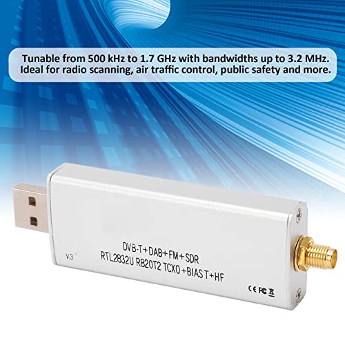 Toepassing: voor algemene radioscanning, luchtverkeersleiding, openbare veiligheid, ADS-B-vliegtuigradar, ACARS, trunked radio, voor p25 mototrbo digitale stem, POCSAG, weerballonnen, APRS, voor NOAA APT METEOR M2 weersatellieten, radioastronomie, DAB of als goedkope panadapter met hamradio.
