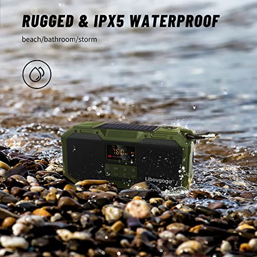 Libovgogo Noodradio, spatwaterdicht, bluetooth-luidspreker, draagbare AM/FM zonne-crankradio met zaklamp, led-leeslamp, zonnepaneel, 4000 mAh, powerbank, outdoor, camping, dynamo-radio, draagbare crankradio, noodradio, digitale radio, bluetooth zonne-radio, noodgevallen, zonnelamp, dynamo, crank emergency outdoor survival handslinger, draagbare camping zaklamp waterdicht noodgevallen, mobiele telefoon oplaadfunctie stroom zzzwengelen 4000 mAh