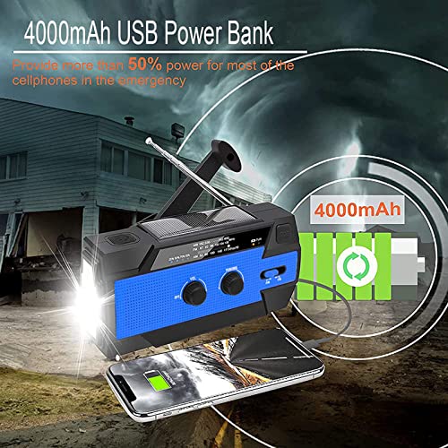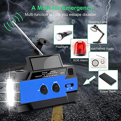 Emergency Solar Hand Crank Radio, 4000mAh Draagbare NOAA Weer Zonneradio’s met 1W Zaklamp & Bewegingssensor Leeslamp, SOS-alarm voor thuis en noodgevallen