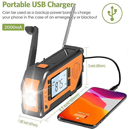 4 oplaadmodi: in vergelijking met 2000 mAh of 1000 mAh noodradio op de markt, is de zonne-radio geüpgraded naar 4000mAh. Het verstrekken van noodstroom voor uw telefoon of tablet. Ook Micro USB-lading, Solar Charge, Hand-crank kan ook leveren de zaklamp radio duren voor dagen nadat de storm was verstreken totdat de stroom weer is ingeschakeld. Het maakt niet uit in welke noodsituatie je jezelf bevindt, deze handzwengellamp raakt nooit zonder elektriciteit!