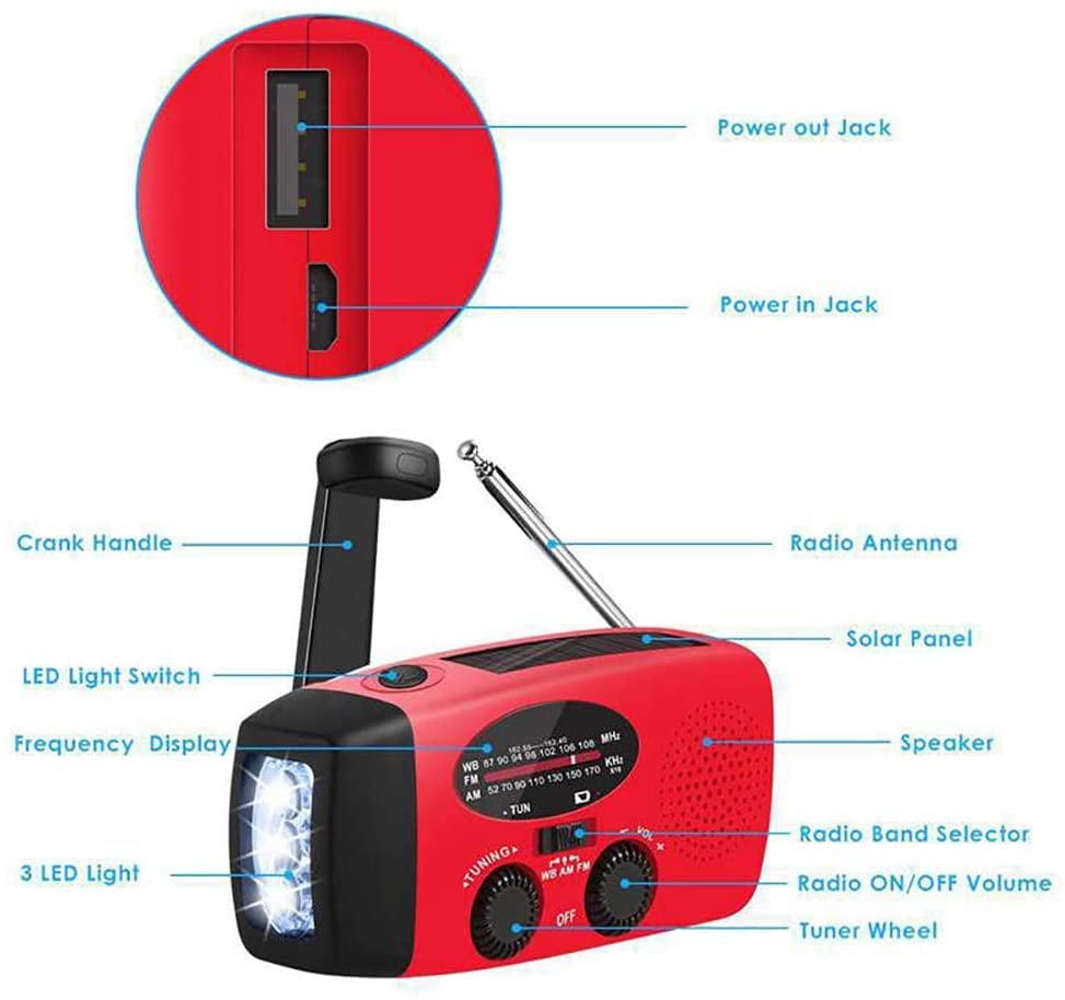 Maak je altijd en overal klaar: neem deze radio mee en geniet van al je avonturen. Ideaal voor kamperen, vissen, wandelen, wandelen, reizen naar parken of stranden, of zelfs resort bij het zwembad. Het is ook geweldig om een noodgeval te hebben, zoals een stroomuitval.