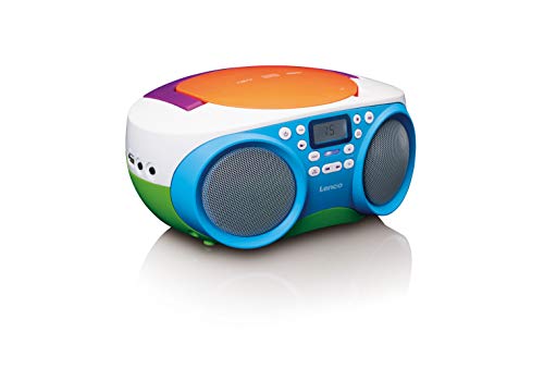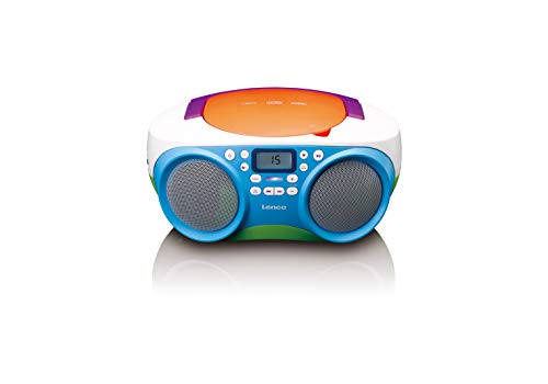 Lenco SCD-41 – CD-speler voor kinderen – CD-radio – stereosysteem – Boombox – FM-radio tuner – USB-aansluiting – MP3 – 2 x 1 W RMS-vermogen – net- en batterijvoeding – kleurrijk